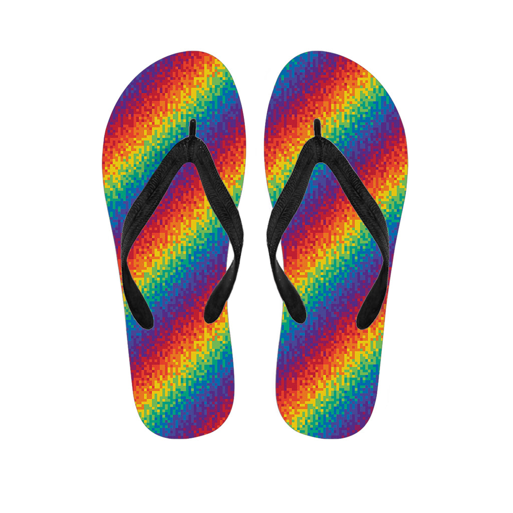 Pixel Rainbow Pattern Print Flip Flops For Men Women