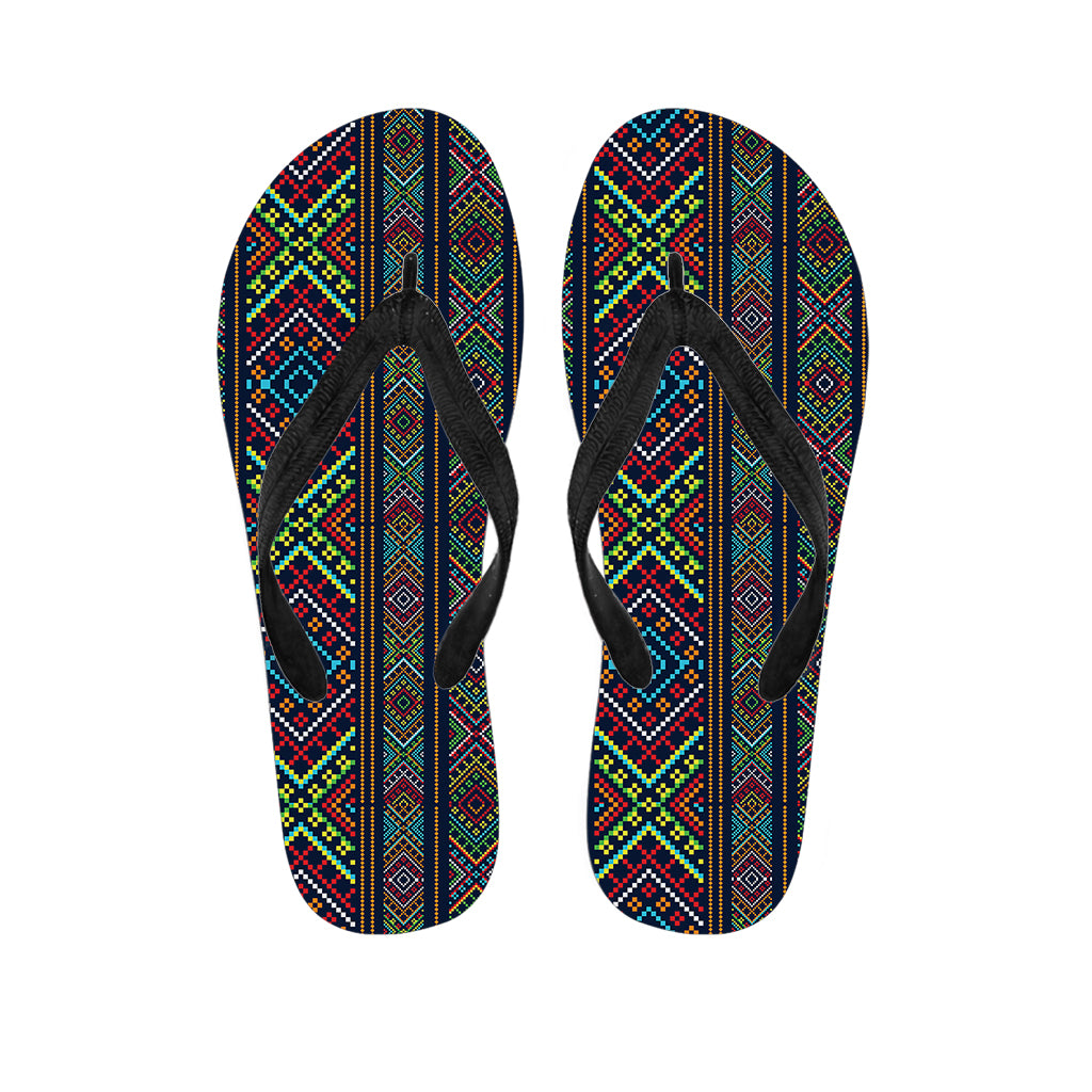 Pixel Ethnic Pattern Print Flip Flops For Men Women