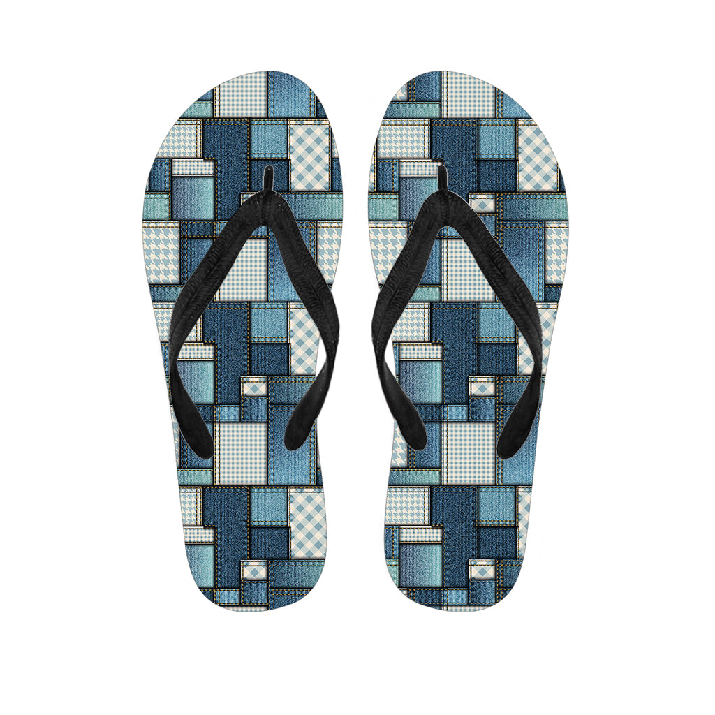 Plaid And Denim Patchwork Pattern Print Flip Flops For Men Women