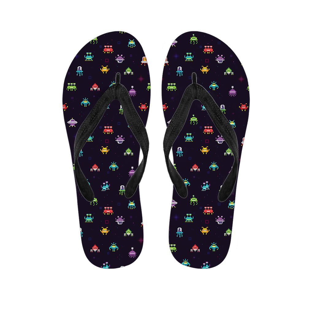 Pixel Ufo Aliens Pattern Print Flip Flops For Men Women