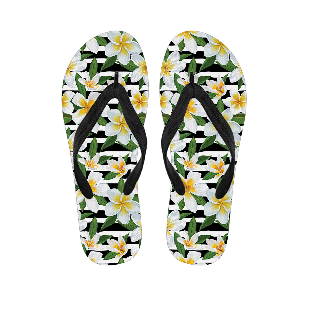Plumeria Flower Striped Pattern Print Flip Flops For Men Women