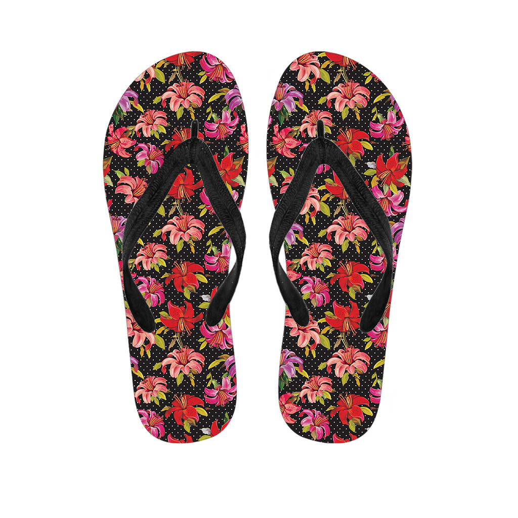 Polka Dot Lily Pattern Print Flip Flops For Men Women