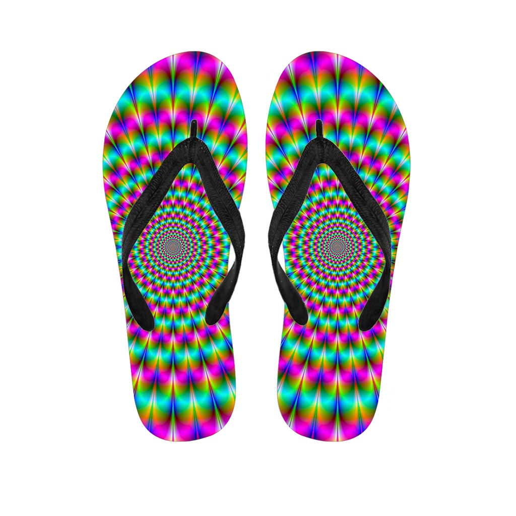 Psychedelic Rave Optical Illusion Flip Flops For Men Women