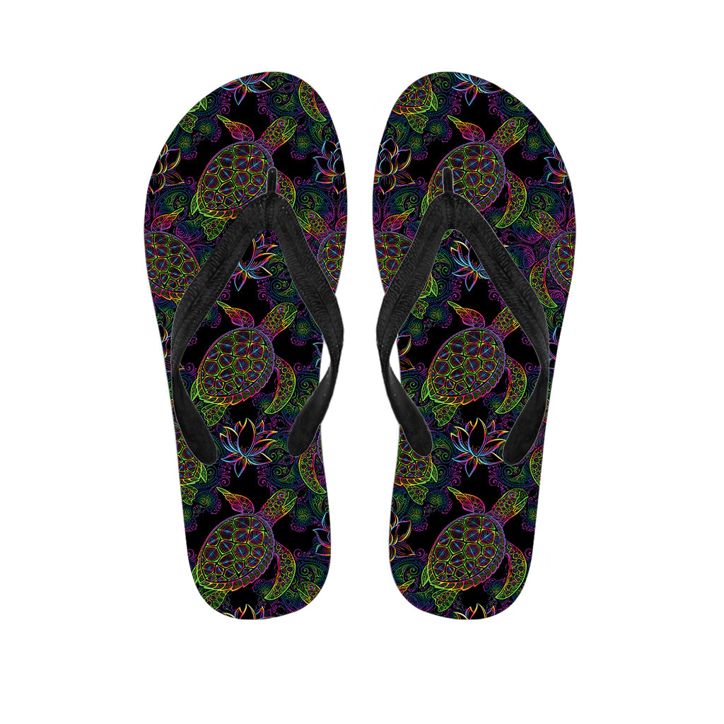 Psychedelic Sea Turtle Pattern Print Flip Flops For Men Women