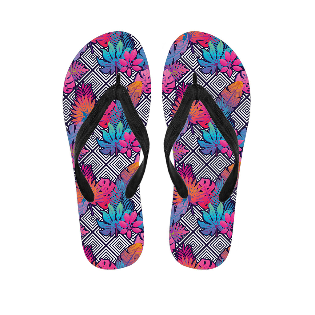 Psychedelic Tropical Aloha Pattern Print Flip Flops For Men Women