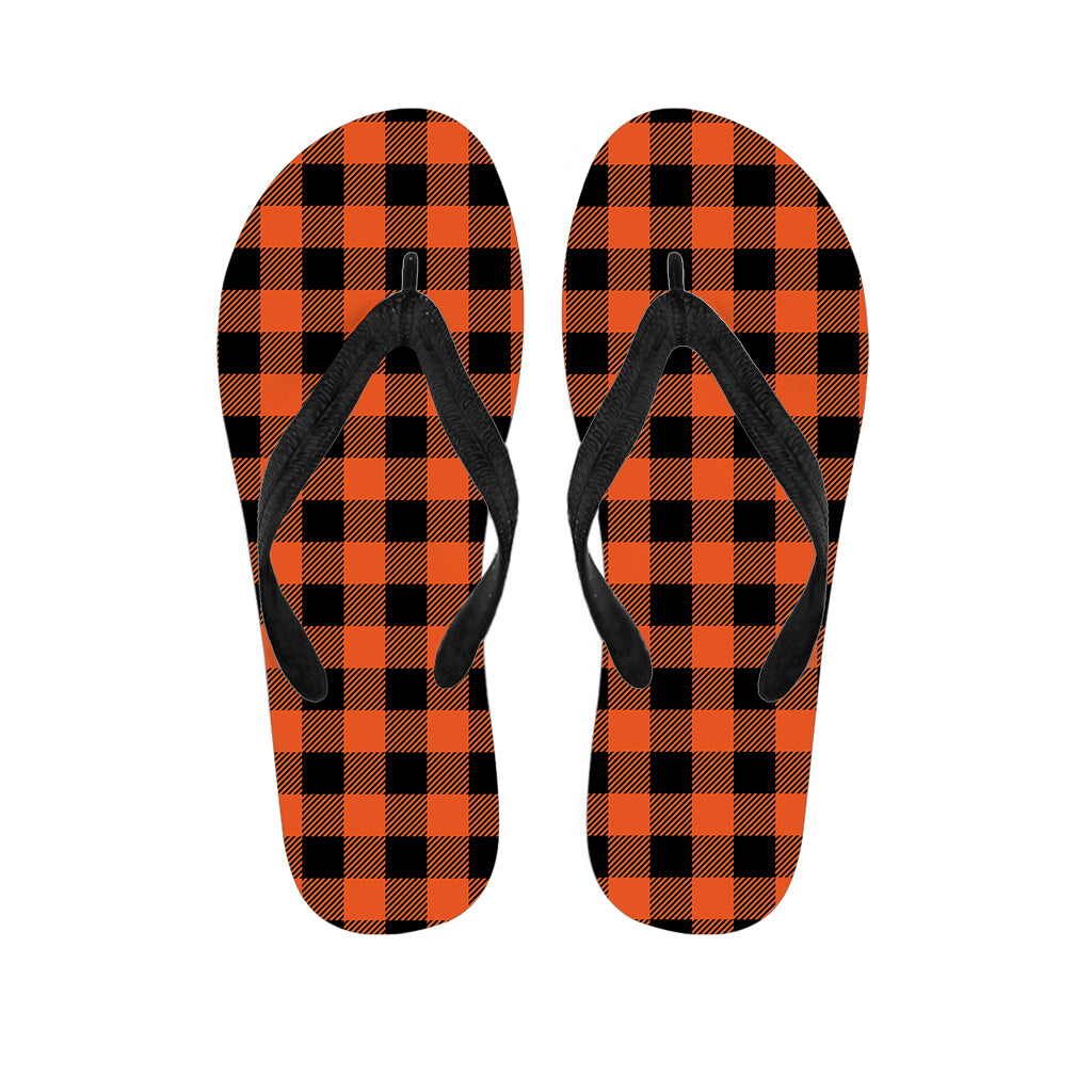 Pumpkin Orange Buffalo Check Print Flip Flops For Men Women