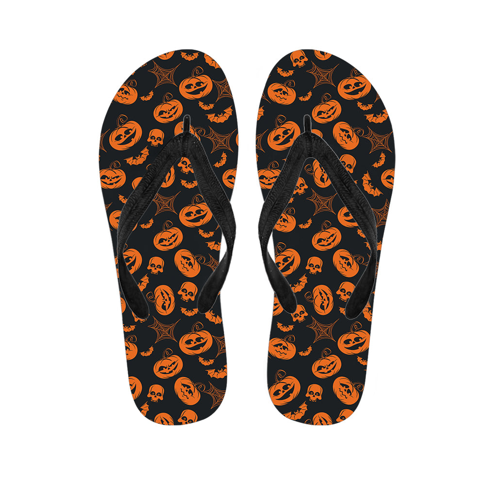 Pumpkin And Bat Pattern Print Flip Flops For Men Women