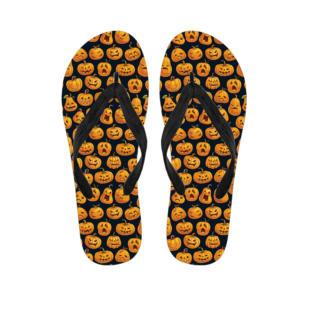 Pumpkin Faces Pattern Print Flip Flops For Men Women