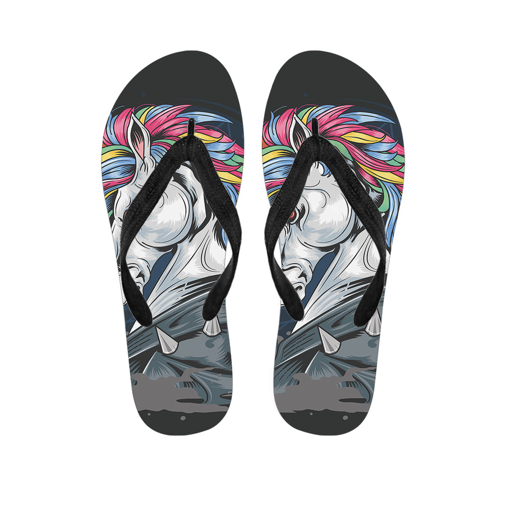 Punk Unicorn Print Flip Flops For Men Women