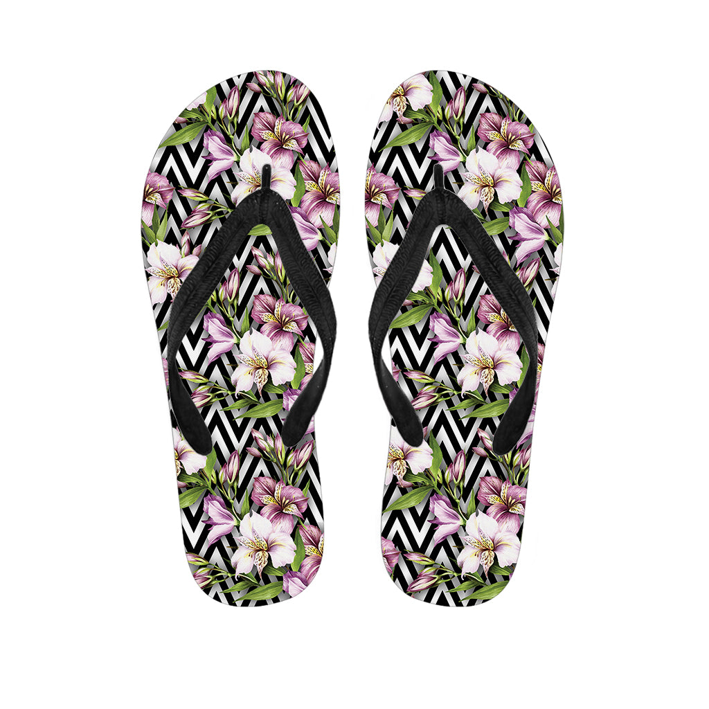 Purple Alstroemeria Zigzag Pattern Print Flip Flops For Men Women