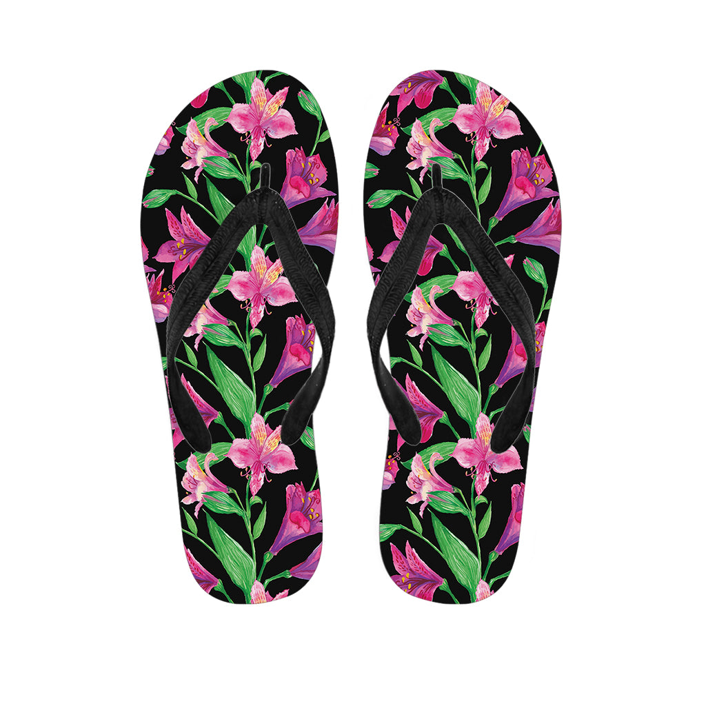 Purple Alstroemeria Print Flip Flops For Men Women