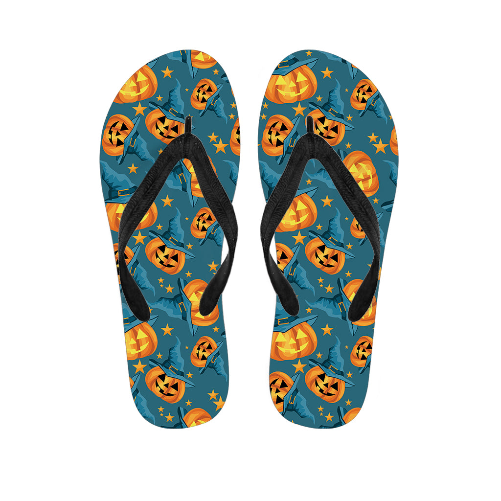 Pumpkin With Witch Hat Pattern Print Flip Flops For Men Women