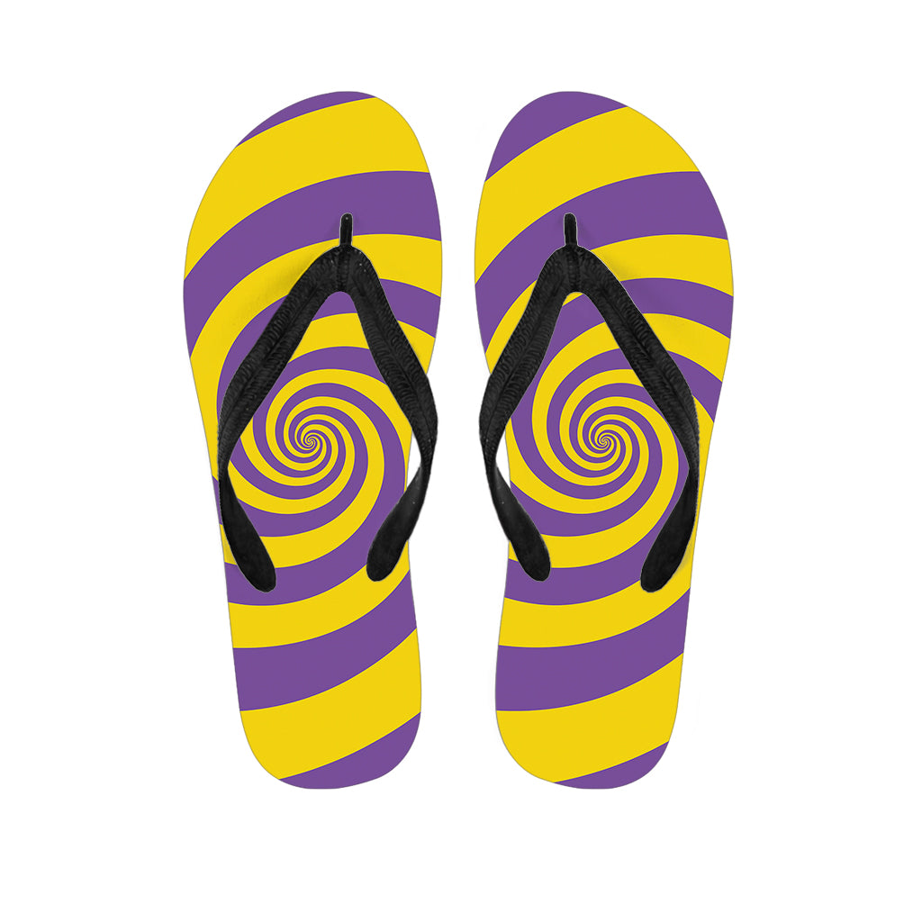 Purple And Yellow Spiral Illusion Print Flip Flops For Men Women