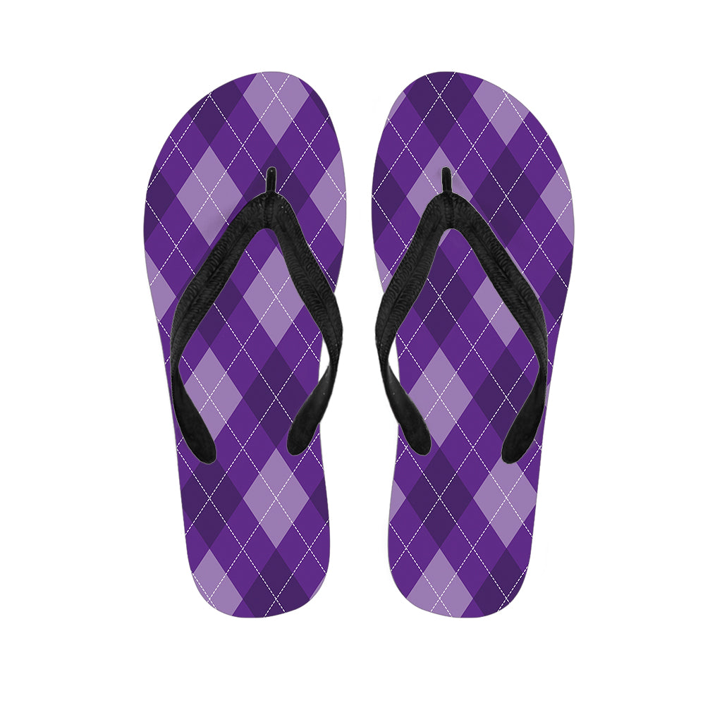 Purple Argyle Pattern Print Flip Flops For Men Women