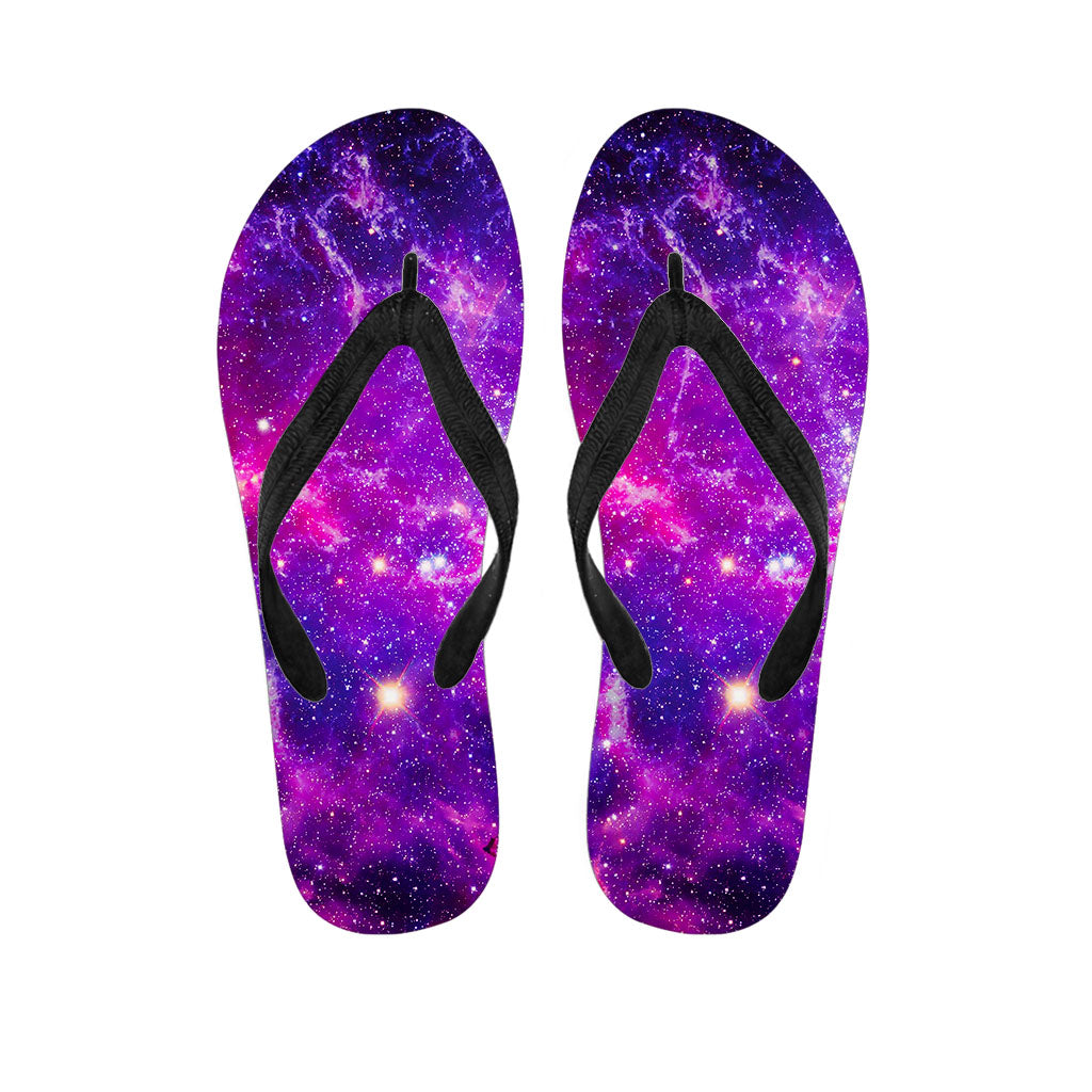 Purple Bursting Galaxy Space Print Flip Flops For Men Women