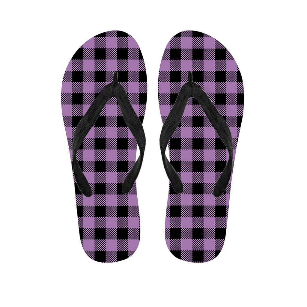 Purple Buffalo Plaid Print Flip Flops For Men Women