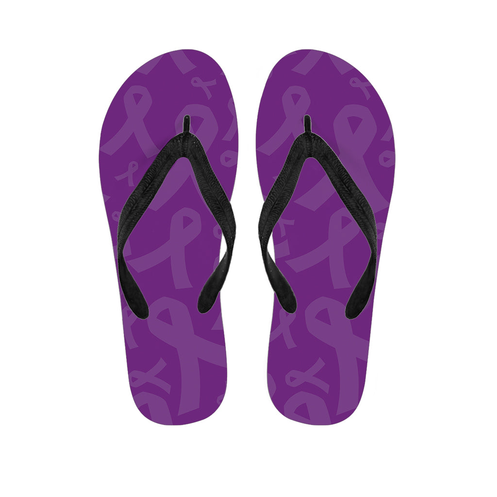 Purple Cancer Awareness Ribbon Print Flip Flops For Men Women