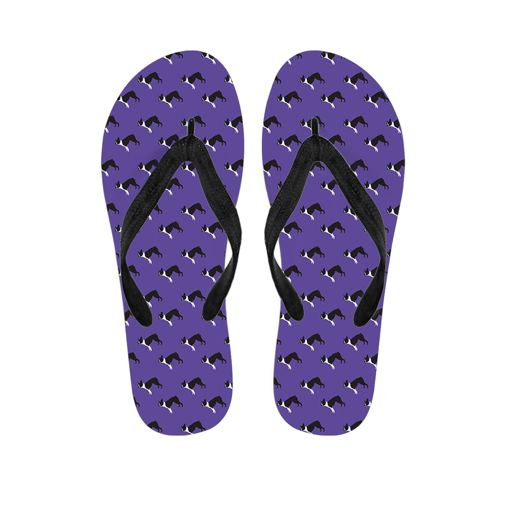 Purple Boston Terrier Pattern Print Flip Flops For Men Women