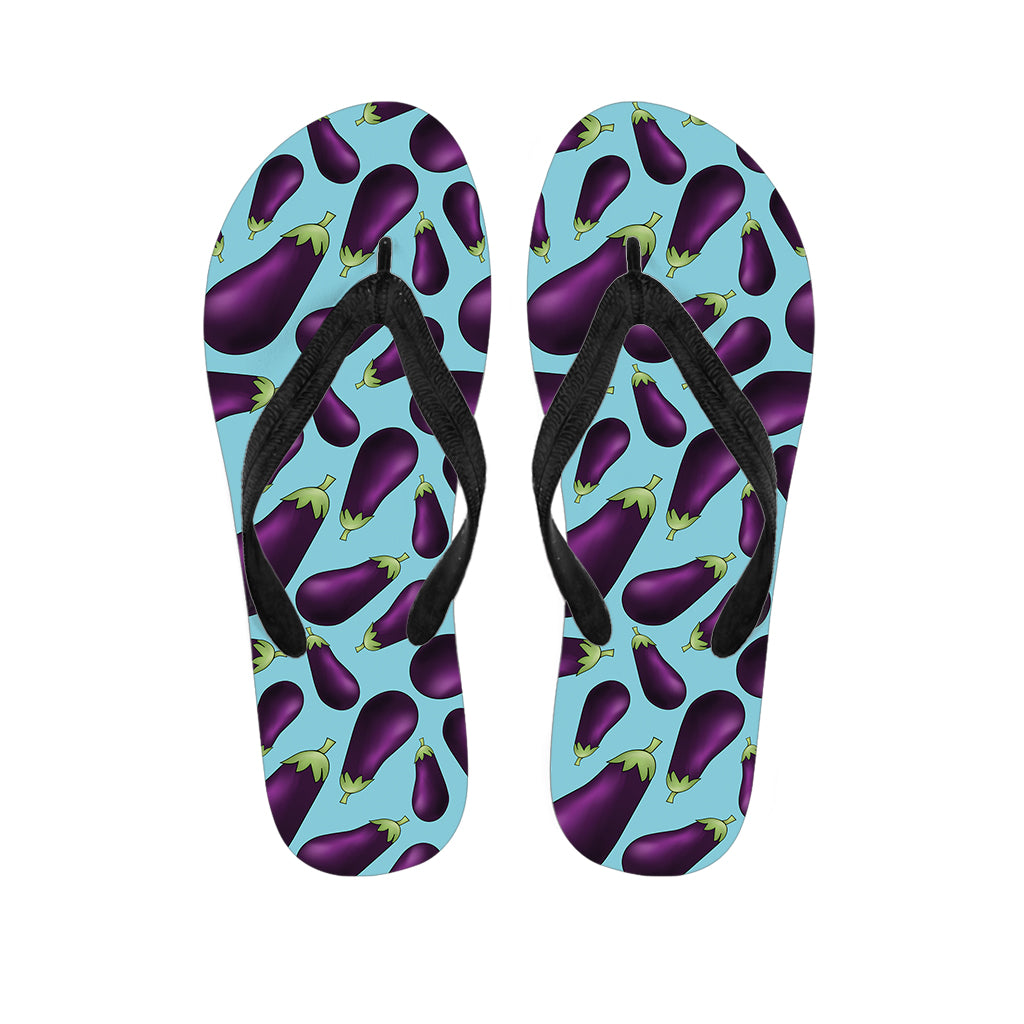 Purple Eggplant Pattern Print Flip Flops For Men Women