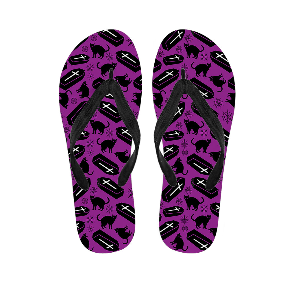 Purple Coffin Pattern Print Flip Flops For Men Women