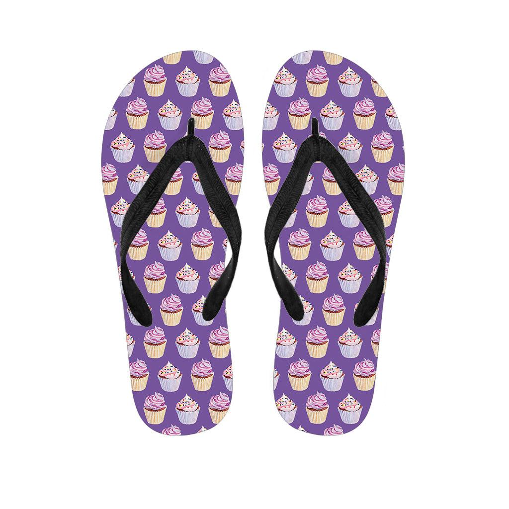 Purple Cupcake Pattern Print Flip Flops For Men Women