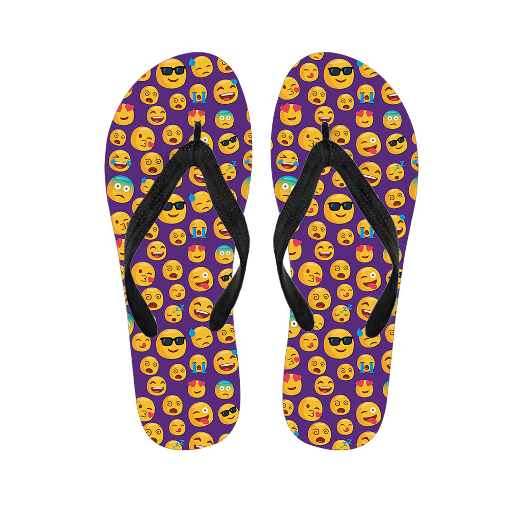 Purple Emoji Pattern Print Flip Flops For Men Women