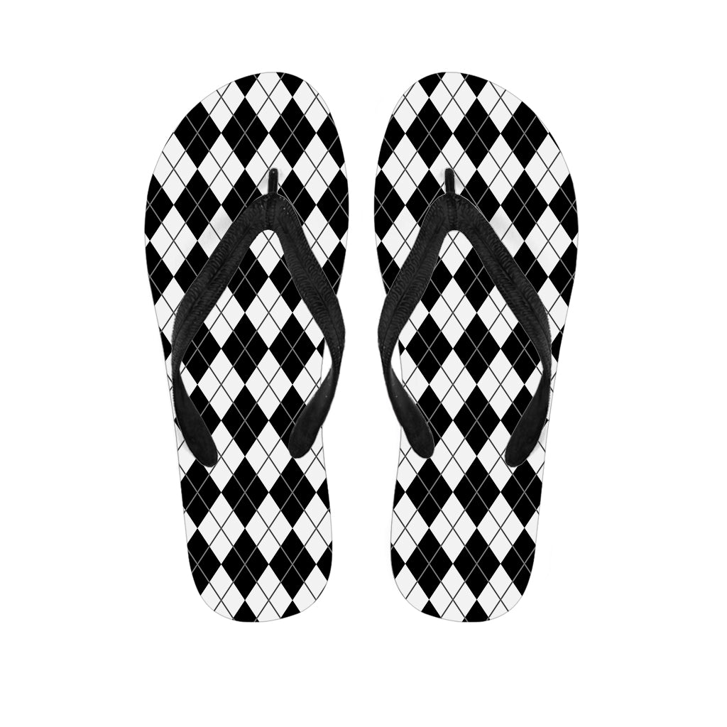 Black And White Argyle Pattern Print Flip Flops For Men Women