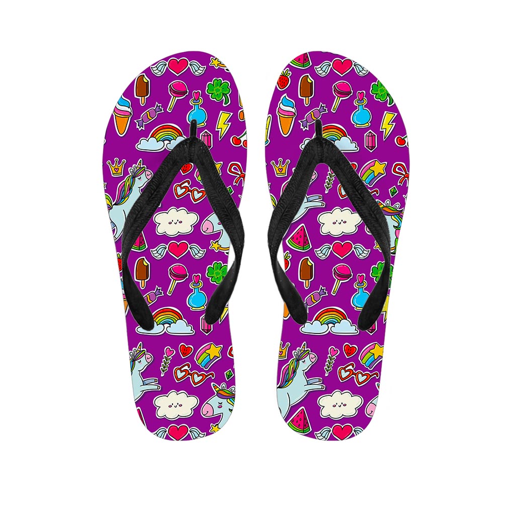 Purple Girly Unicorn Pattern Print Flip Flops For Men Women