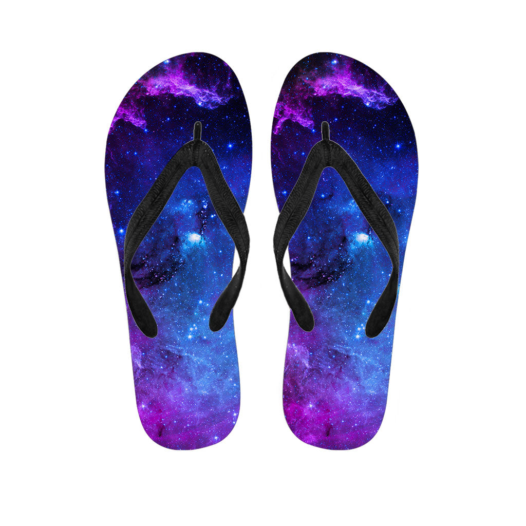 Purple Galaxy Space Blue Starfield Print Flip Flops For Men Women
