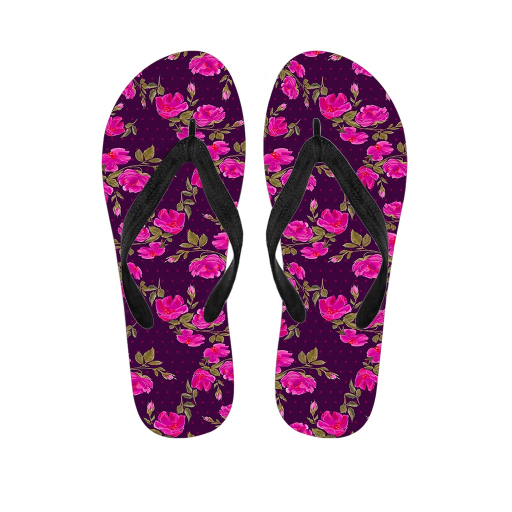 Purple Floral Flower Pattern Print Flip Flops For Men Women