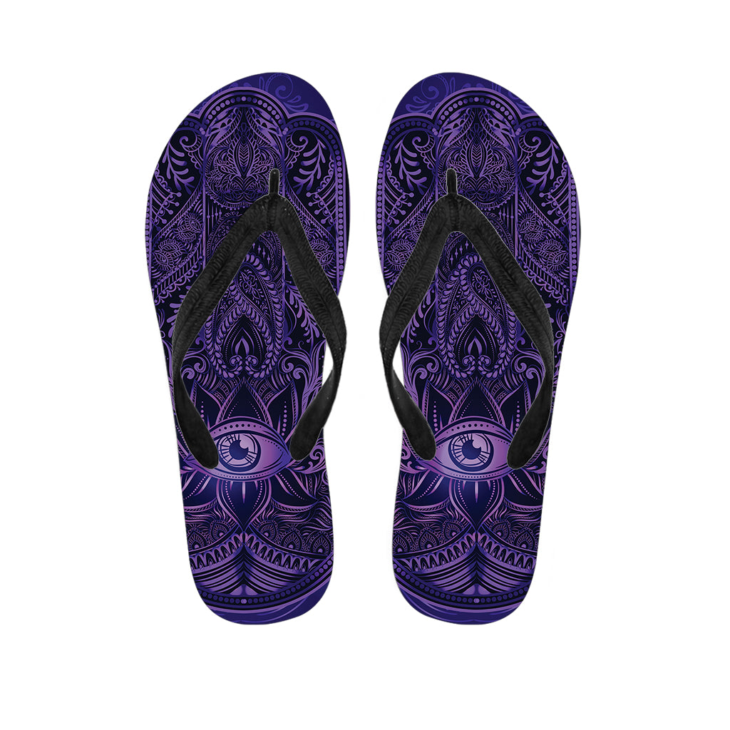 Purple Hamsa Hand Print Flip Flops For Men Women