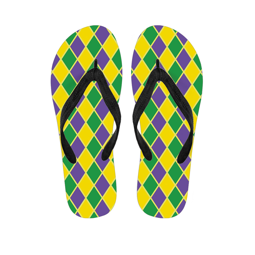 Purple Green And Yellow Mardi Gras Print Flip Flops For Men Women