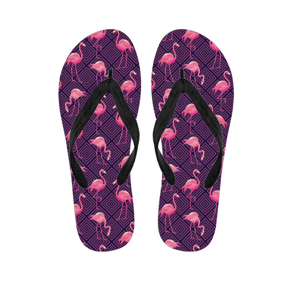 Purple Geometric Flamingo Pattern Print Flip Flops For Men Women