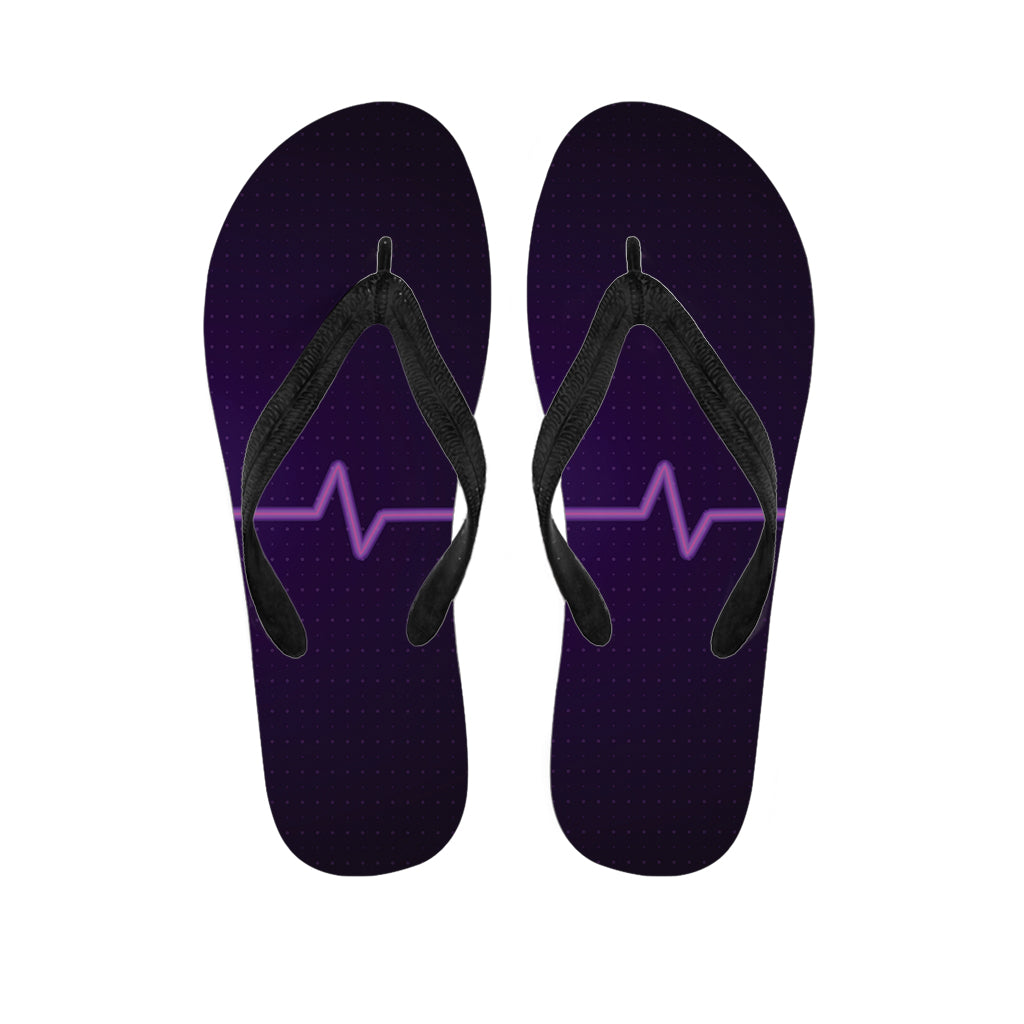 Purple Heartbeat Print Flip Flops For Men Women