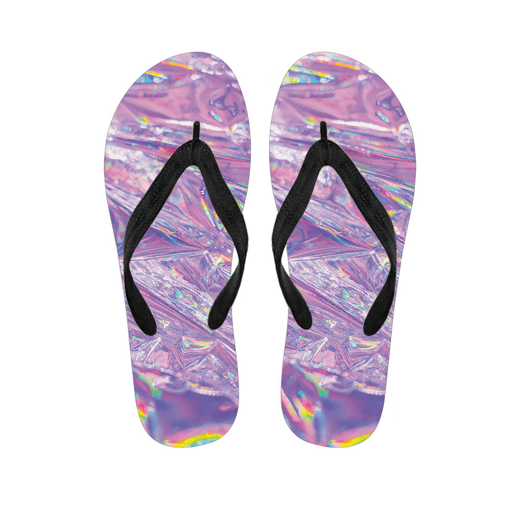 Purple Holographic Print Flip Flops For Men Women