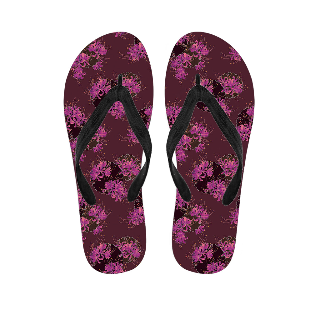 Purple Japanese Amaryllis Pattern Print Flip Flops For Men Women