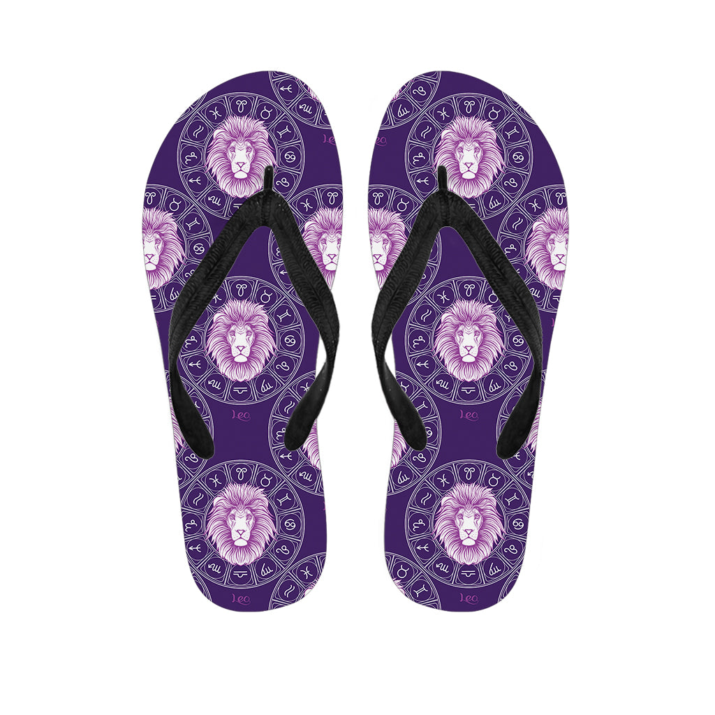 Purple Leo Zodiac Pattern Print Flip Flops For Men Women
