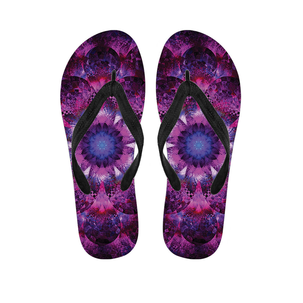 Purple Mandala Flower Print Flip Flops For Men Women