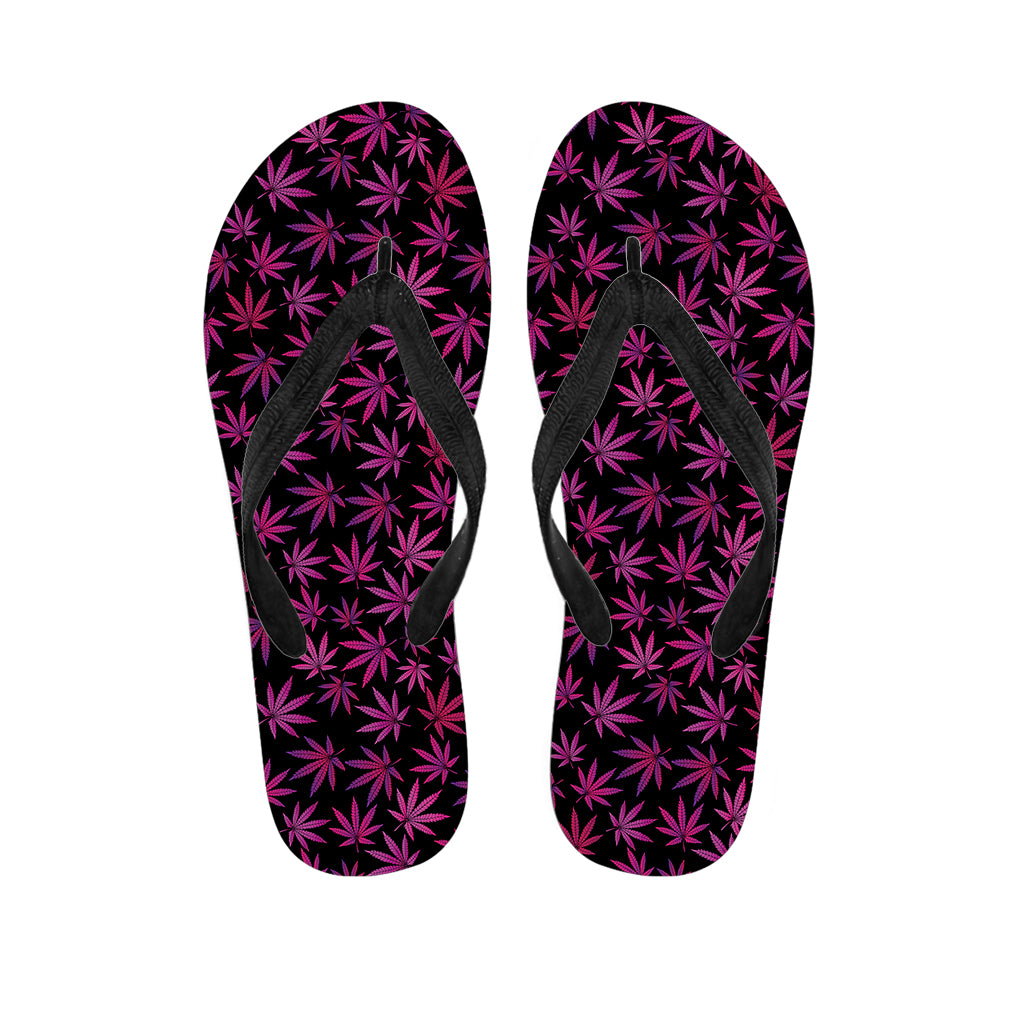 Purple Marijuana Leaf Pattern Print Flip Flops For Men Women