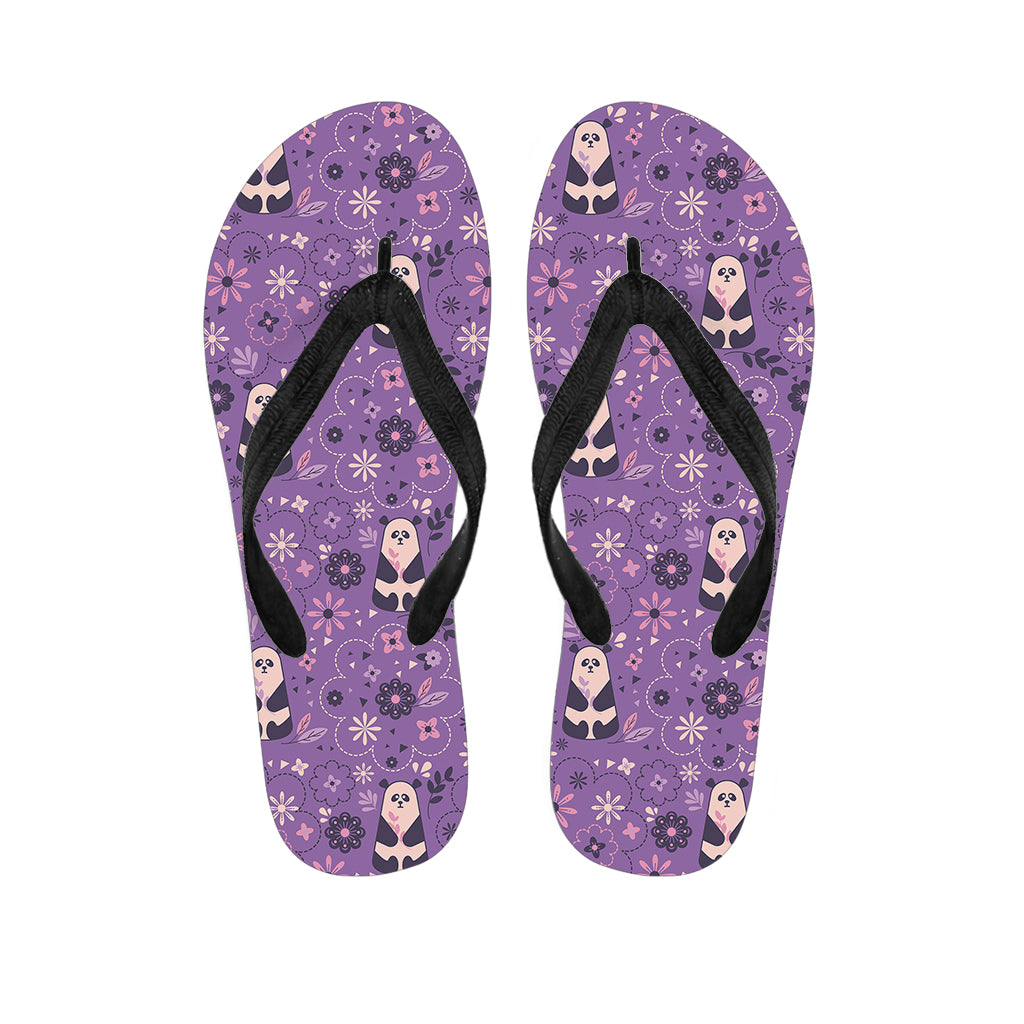 Purple Panda And Flower Pattern Print Flip Flops For Men Women