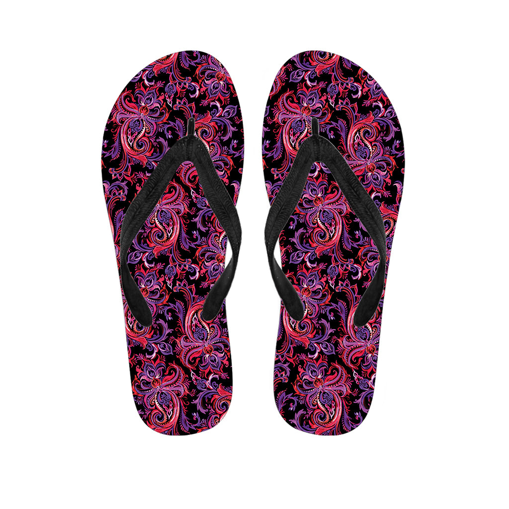 Purple Paisley Pattern Print Flip Flops For Men Women