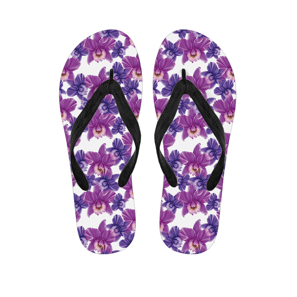 Purple Orchid Flower Pattern Print Flip Flops For Men Women