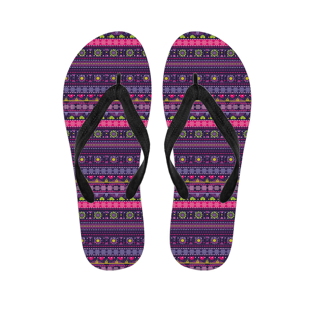 Purple Native Tribal Pattern Print Flip Flops For Men Women