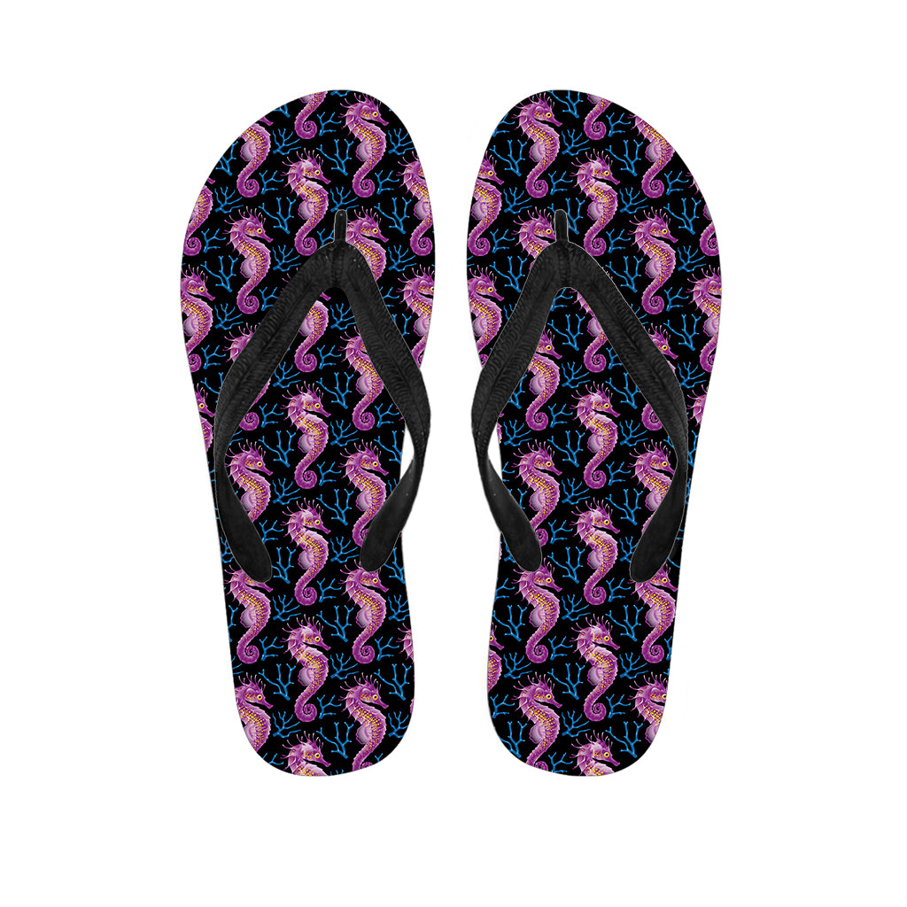 Purple Seahorse Pattern Print Flip Flops For Men Women