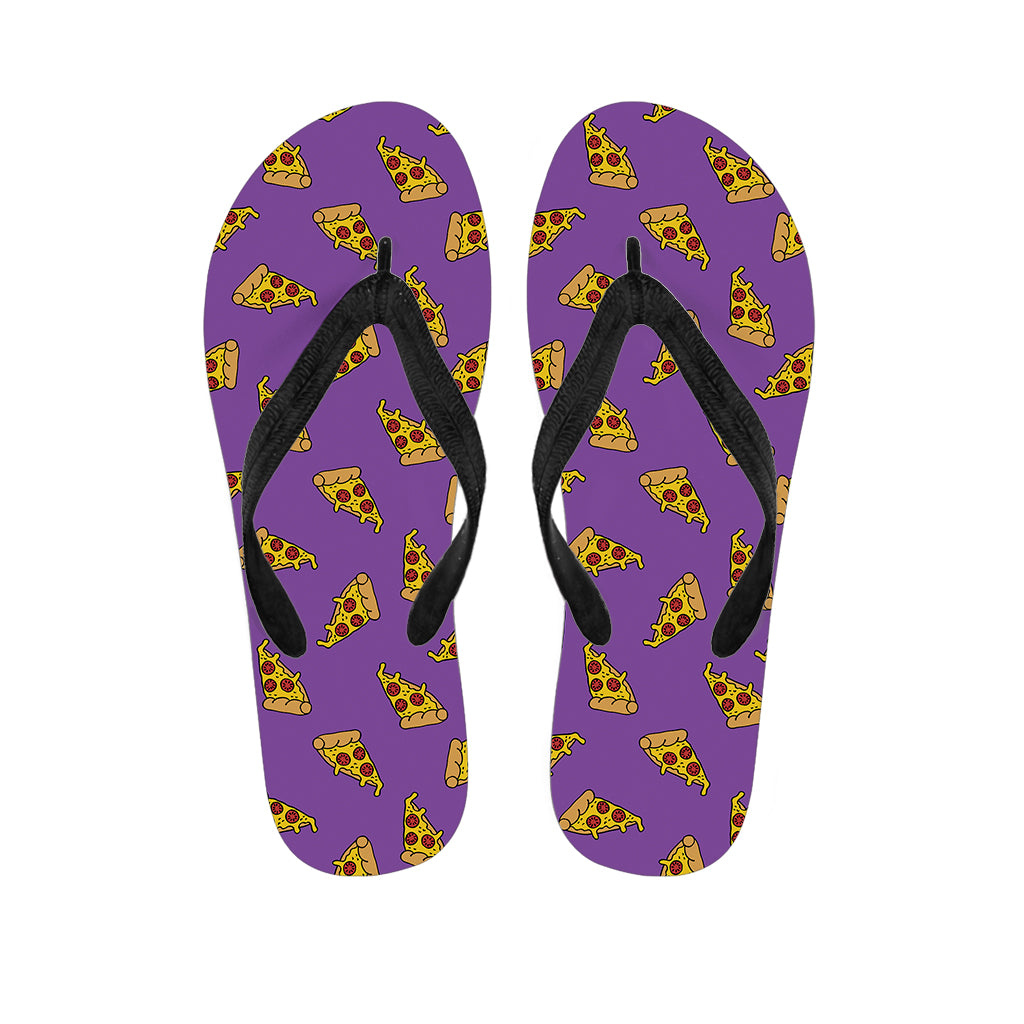 Purple Pizza Pattern Print Flip Flops For Men Women