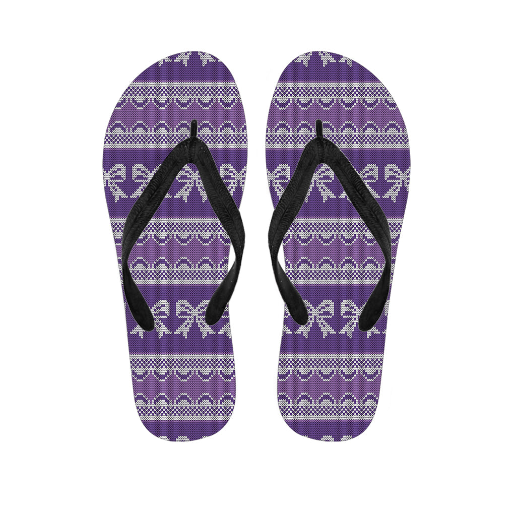 Purple Ribbon Knitted Pattern Print Flip Flops For Men Women