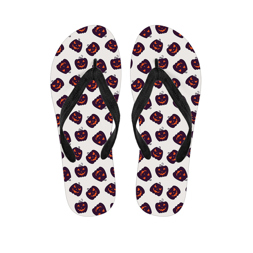 Purple Pumpkin Pattern Print Flip Flops For Men Women