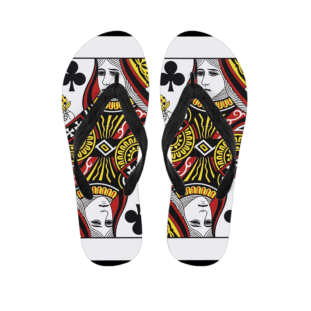 Queen Of Clubs Playing Card Print Flip Flops For Men Women