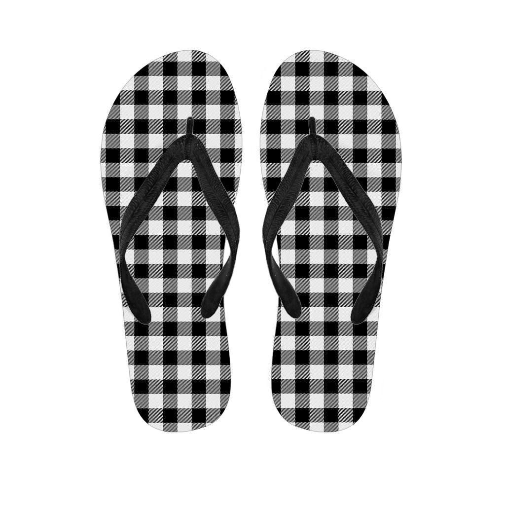 Black And White Buffalo Plaid Print Flip Flops For Men Women