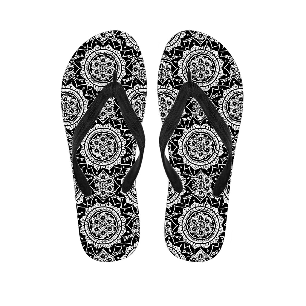 Black And White Boho Mandala Print Flip Flops For Men Women